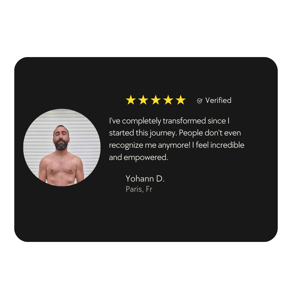 We don't do generic, restrictive diets. In addition to elite fitness and nutrition programming, we focus heavily on building the mental framework you need to keep the weight off for good. You get 24/7 support through our private Discord brotherhood, routine check-ins, and a system built for long-term sustainability.